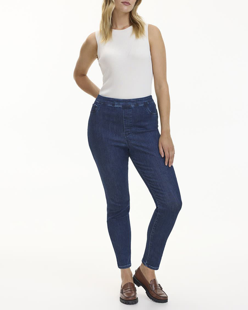 Swap your regular jeans for these pull-on denim legging pants without anyone noticing. Stylish and super comfortable.